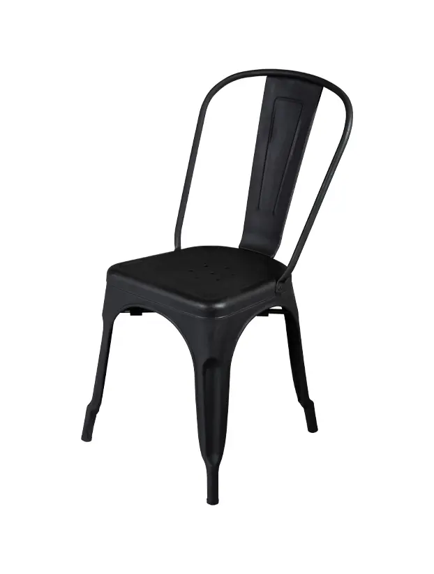 Esta silla Tolix en color negro es un clásico del diseño industrial, ideal para eventos con una estética moderna y robusta. Su estructura de metal la hace resistente y duradera, además de brindarle un aspecto urbano y elegante. El respaldo alto y el asiento perforado le otorgan un diseño distintivo, mientras que su acabado en negro mate le da un toque sofisticado. Es perfecta para eventos al aire libre, interiores industriales, o espacios contemporáneos que buscan un mobiliario funcional con personalidad. Esta silla es versátil y combina bien en decoraciones tanto informales como formales.