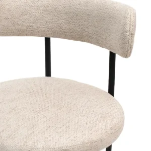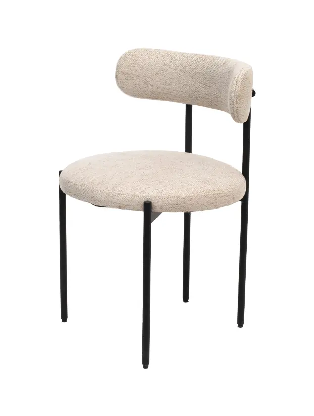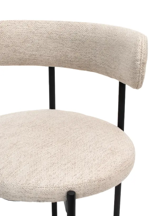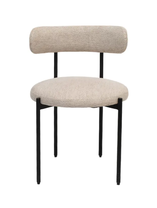 Esta silla combina un diseño moderno y minimalista con gran comodidad. Su estructura metálica en color negro aporta estabilidad y contraste, mientras que el asiento y respaldo están tapizados en tela beige de textura suave. El respaldo cilíndrico proporciona un soporte ergonómico, complementando la silueta elegante de la silla. Ideal para eventos sofisticados, bodas y reuniones donde se busca un equilibrio entre estilo y confort.