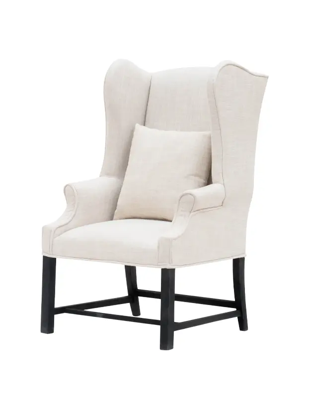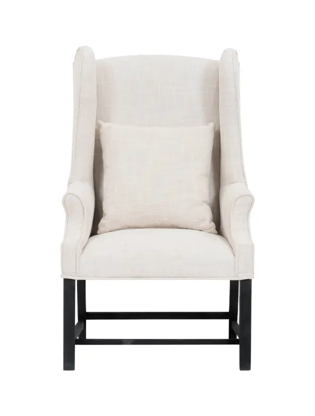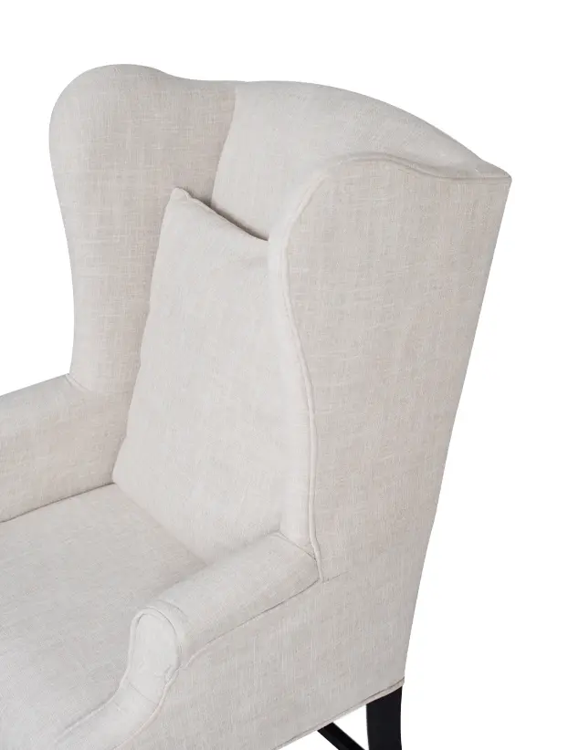 Este sillón estilo «antique» tiene un diseño clásico y elegante, con respaldo alto y alas laterales que ofrecen un soporte adicional. Tapizado en color ivory, brinda un aspecto sofisticado y atemporal, ideal para ambientes tradicionales o vintage. Sus apoyabrazos curvados y su cojín adicional en el respaldo aumentan la comodidad, mientras que la estructura y patas en madera oscura crean un contraste armonioso. Este sillón es perfecto para salas de estar, áreas de lectura o recepciones, aportando un toque de distinción y clase a cualquier espacio.
