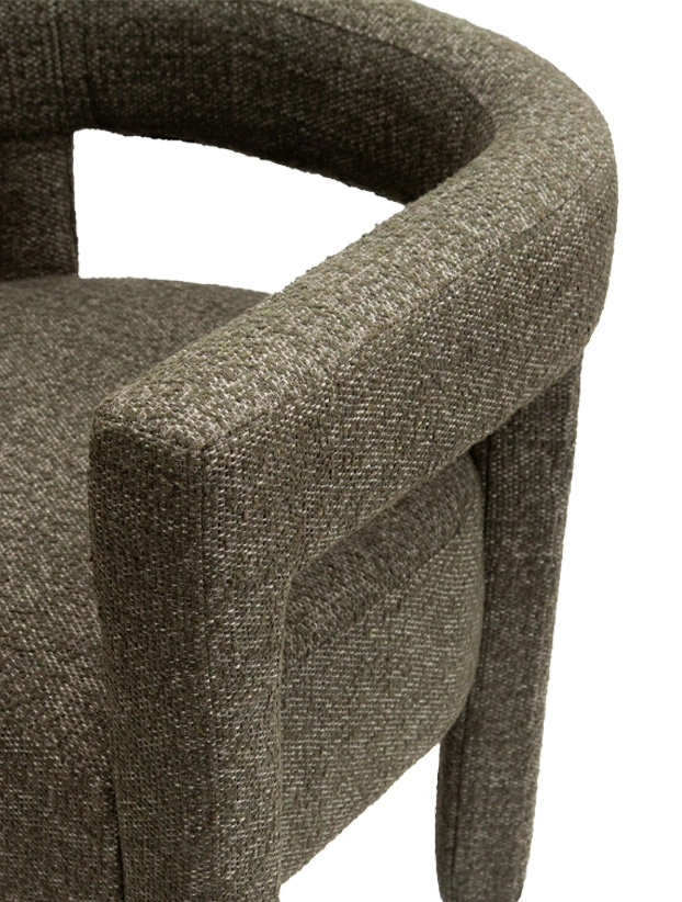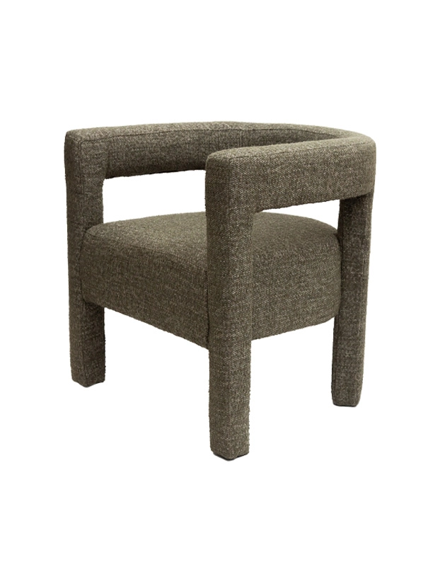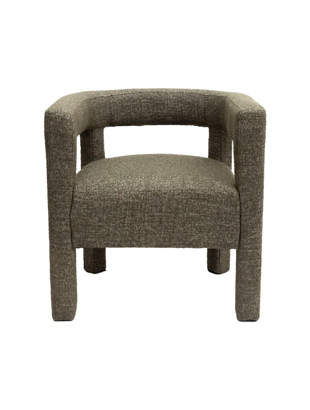 Este sillón de diseño contemporáneo tapizado en tela texturizada es perfecto para zonas lounge en eventos que buscan confort con estilo. Su estructura curva y respaldo abierto lo hacen visualmente ligero, mientras que su asiento amplio ofrece gran comodidad. Ideal para montajes modernos, minimalistas o neutros, aporta sofisticación sin perder funcionalidad.