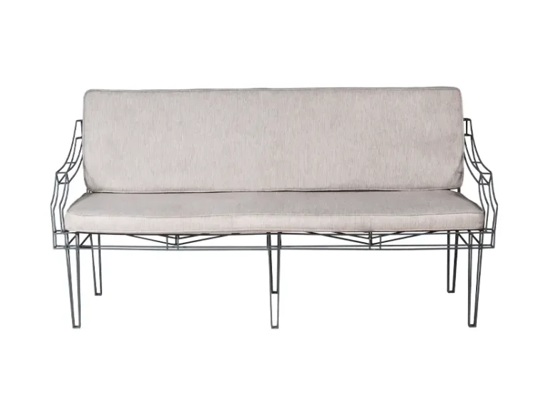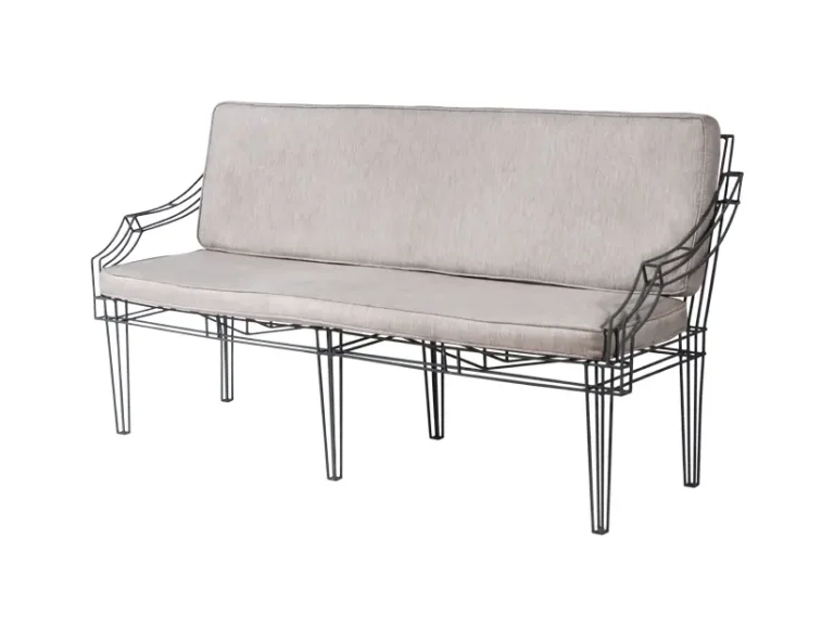 Este sofá de diseño contemporáneo cuenta con una estructura metálica en color negro, lo que le aporta un estilo industrial elegante. Los cojines en tono gris claro ofrecen comodidad y contrastan suavemente con el armazón, creando una apariencia ligera y moderna. Su diseño abierto y geométrico lo convierte en una pieza ideal para eventos que buscan un mobiliario con personalidad y un toque sofisticado. Perfecto para interiores o exteriores cubiertos, este sofá es versátil y estilizado, adecuado para ambientes modernos y minimalistas.