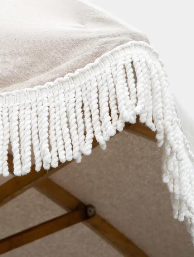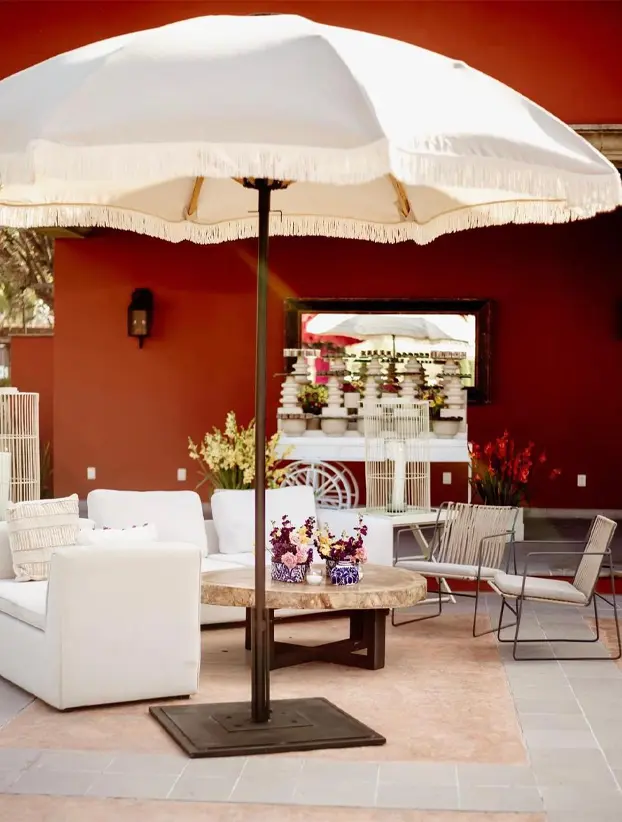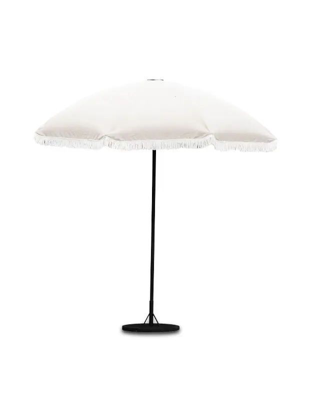 Esta sombrilla Tresteve presenta un diseño elegante y clásico en tono blanco, ideal para eventos que buscan un toque de sofisticación y estilo vintage. Su borde decorado con flecos aporta un detalle distintivo y refinado, perfecto para bodas, recepciones o eventos al aire libre de alta gama. Con un mástil central robusto y una base circular que proporciona estabilidad, esta sombrilla no solo es funcional para proporcionar sombra, sino que también añade un elemento decorativo encantador que complementa la ambientación de cualquier espacio exterior.