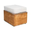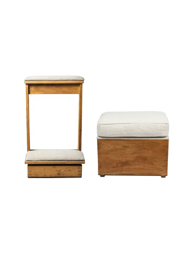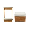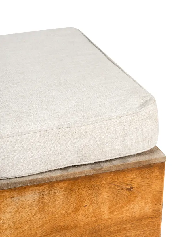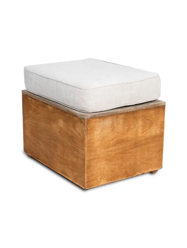 Taburete de madera con cojín superior en color ivory, ideal para renta en eventos que buscan un estilo rústico y elegante. Su base sólida en madera y el asiento acolchado brindan comodidad y un toque natural, perfecto para áreas de lounge o como asiento adicional en decoraciones bohemias o campestres. Este taburete es una pieza versátil que aporta calidez y funcionalidad a cualquier espacio.