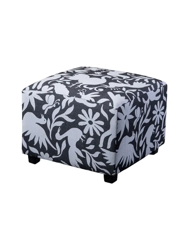 Este taburete cuadrado está tapizado con un textil inspirado en los bordados otomíes, con un diseño en blanco y negro que presenta patrones de flora y fauna típicos de esta tradición artesanal mexicana. La estructura compacta y acolchada ofrece comodidad, mientras que el estampado añade un toque cultural y decorativo. Este taburete es perfecto para eventos y espacios que buscan un estilo bohemio, étnico o con toques mexicanos, aportando un elemento visualmente atractivo y lleno de identidad. Ideal como asiento extra o como elemento decorativo que resalta la riqueza del arte tradicional mexicano.