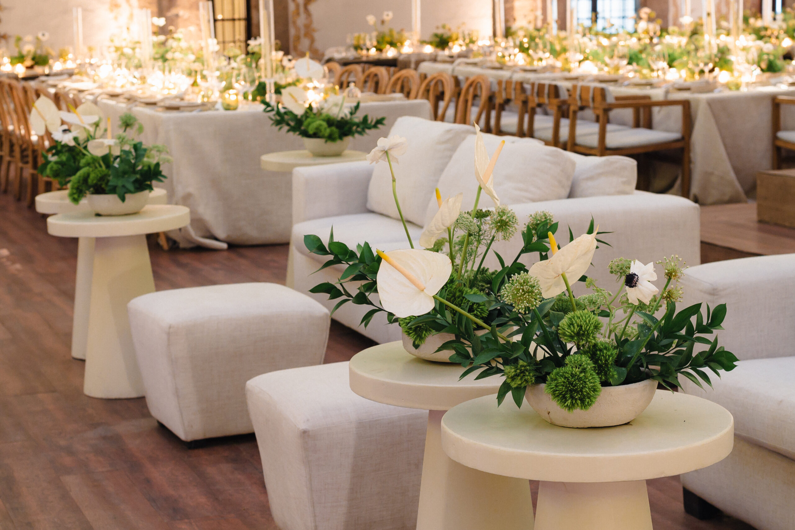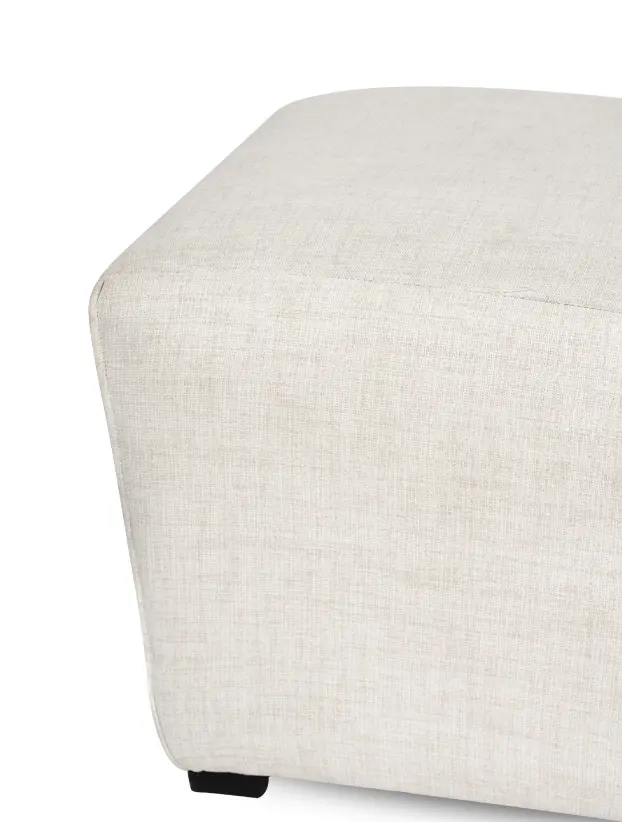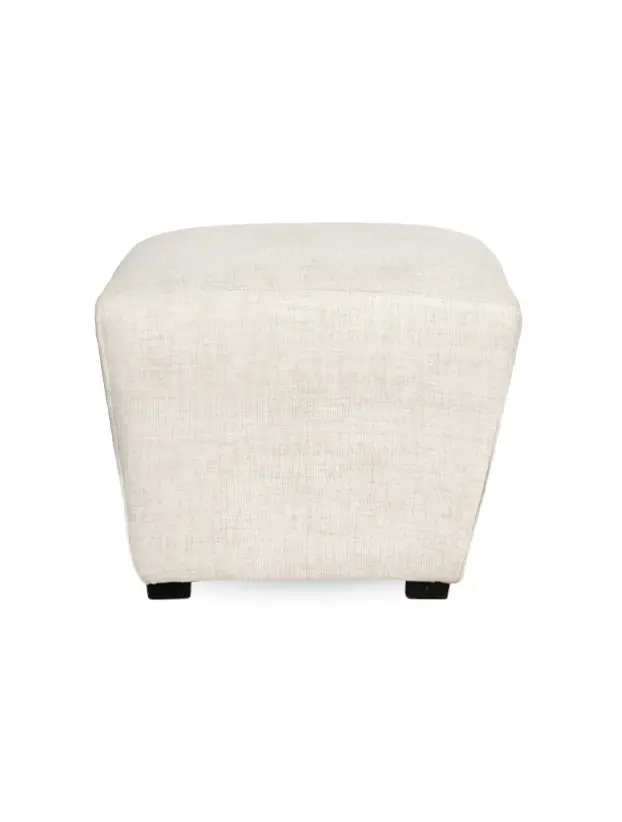 Taburete en forma prismática con tapizado en color ivory y detalles de tachuelas en las esquinas, ideal para renta en eventos que buscan un estilo moderno y elegante. Su diseño único y estructura cómoda lo convierten en un asiento adicional perfecto para áreas de lounge o espacios de socialización. Este taburete añade un toque de sofisticación y se adapta bien a decoraciones contemporáneas o de estilo chic, aportando funcionalidad y estilo.