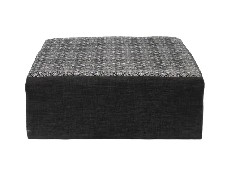 Taburete cuadrado en tonos oscuros con un elegante diseño textil en la parte superior. Su estructura acolchonada brinda comodidad y versatilidad, ideal para complementar salas lounge o áreas de descanso. Su estilo moderno y sofisticado lo convierte en una excelente opción para eventos, proporcionando un asiento adicional con un toque decorativo distintivo.