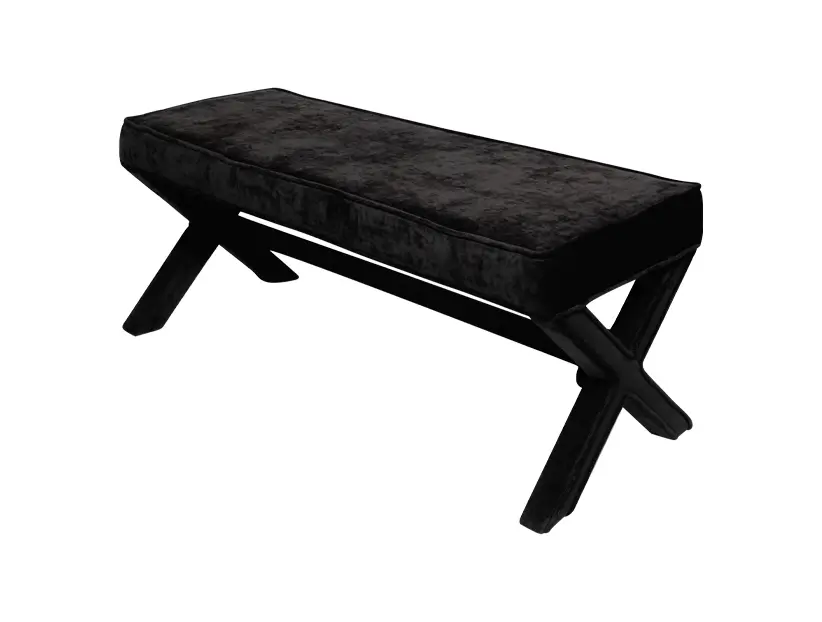Taburete en color negro con diseño de base en forma de «X», ideal para renta en eventos que buscan un estilo moderno y elegante. Su estructura robusta y asiento acolchado le brindan comodidad y un toque sofisticado, perfecto para áreas de lounge o como asiento adicional en decoraciones contemporáneas. Este taburete aporta un contraste refinado, adaptándose fácilmente a ambientes de estilo industrial o minimalista.