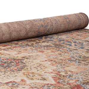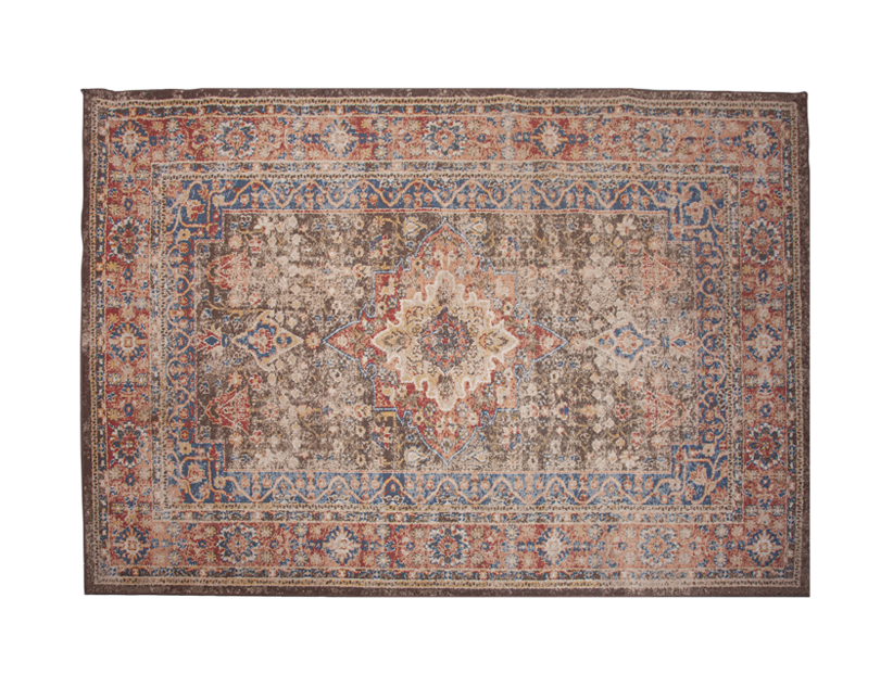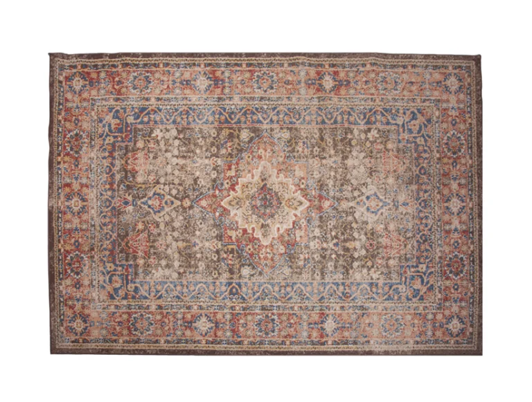 Este tapete estilo persa, modelo Versalles en tonos café, es una pieza clásica de gran riqueza visual que aporta sofisticación y calidez a cualquier montaje. Su diseño central en forma de medallón simétrico está rodeado por un elaborado marco con detalles florales y geométricos en tonos tierra, azul profundo, rojo y marfil. El acabado ligeramente desgastado le da un aire vintage y atemporal, ideal para ceremonias, áreas lounge o ambientaciones boho-chic. Gracias a su paleta equilibrada y su textura ornamental, este tapete funciona como un ancla decorativa que enriquece el entorno sin dominarlo visualmente.