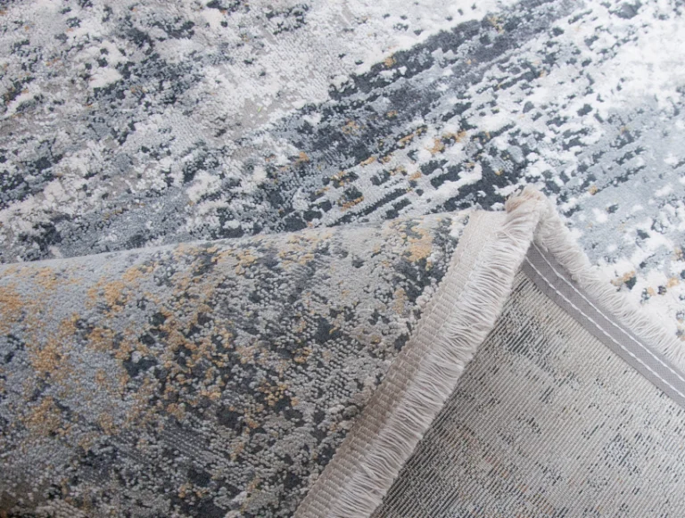 Este tapete de estilo abstracto destaca por su diseño en secciones verticales difusas, con una mezcla armónica de tonos claros como blanco, gris perla, azul tenue y pinceladas ocre. Su patrón visual dinámico pero equilibrado aporta textura y profundidad sin recargar el ambiente, siendo ideal para delimitar espacios con un toque moderno y sofisticado. Perfecto para lounges, altares, pistas de baile pequeñas o zonas de descanso, este tapete se integra fácilmente en montajes contemporáneos o minimalistas, añadiendo luz y carácter al entorno con su diseño artístico y versátil.