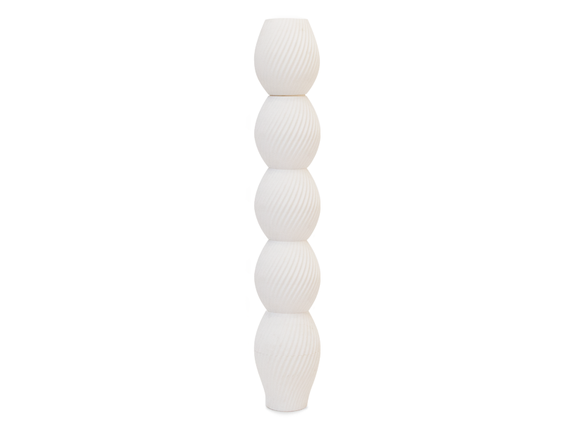 El Totem trinity es una pieza escultórica decorativa de gran impacto visual, ideal para ambientaciones sofisticadas y contemporáneas en eventos. Su diseño vertical está compuesto por cinco módulos apilados con formas orgánicas y texturas onduladas que evocan movimiento y elegancia. Fabricado en un acabado blanco mate, este tótem se convierte en un punto focal que aporta altura, estilo y dinamismo a cualquier espacio, ya sea en entradas, lounges o áreas de exhibición. Disponible para renta, es una opción perfecta para quienes buscan destacar con arte y diseño en sus montajes.