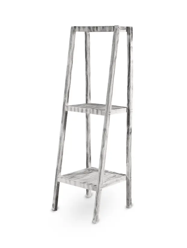 Esta estantería de madera con acabado lavado ofrece una apariencia rústica y ligera, ideal para decoraciones de estilo boho o vintage en eventos. Su diseño en forma de escalera cuenta con dos niveles de estantes que permiten exhibir productos o adornos de forma práctica y decorativa. El acabado lavado le da un toque envejecido que resalta las vetas de la madera, aportando carácter y personalidad al espacio donde se utilice.